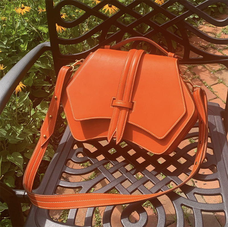 Inspired by the mythical peryton, these luxurious leather goods embody seduction, refinement, and elusiveness. Peryton’s gorgeous silhouettes will stand the test of time and be the center of attention with any outfit. This orange crossbody is hot.