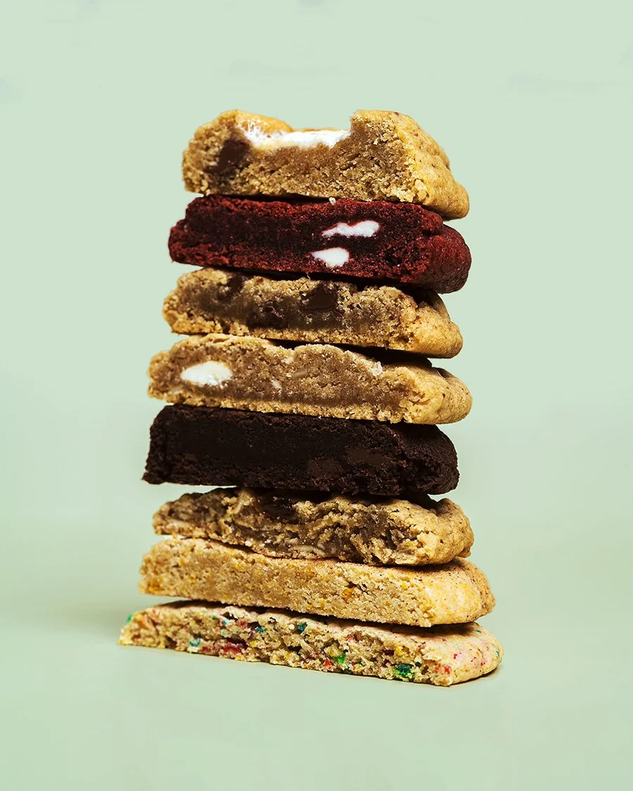 Flavors Include: Chocolate Chip, Maple Oatmeal Raisin, Red Velvet White, 'Sticky Icky' S'mores, 'Bam Bam' Sugar Cookie, Snickerdoodle with a Twist, 'Fudgey' Double Chocolate Chip, and White Chocolate Chip Macadamia.